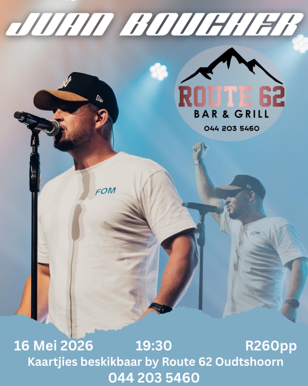 Here at Route 62 Bar & Grill we have some of the most exciting events in Oudtshoorn! Our large stage has seen many of SA’s most famous performers and entertained Oudtshoorn like nowhere else.